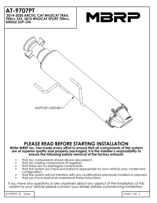 MBRP Single Slip-on Performance Series Arctic Cat WildCat WildCat Trail 2014-2020