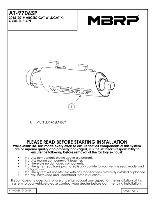 MBRP Oval Slip-on Sport Series Arctic Cat WildCat X Models 2015-2020