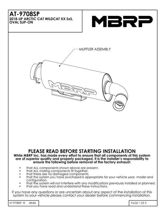 MBRP Oval Slip-on Sport Series Arctic Cat Wildcat XX 2020-2024