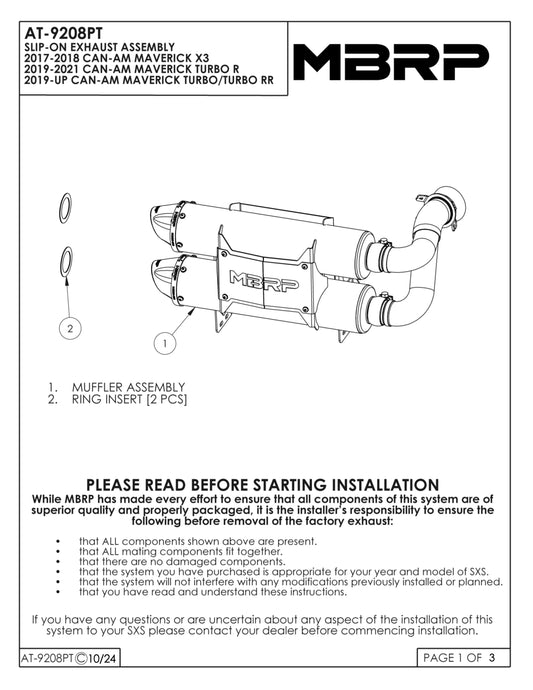 MBRP Oval Slip-on Turbo-Back Full System Can-Am Maverick X3 2017-2025