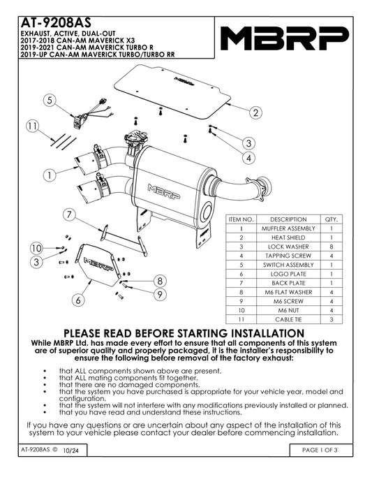 MBRP Dual-Out Active Exhaust Can-Am Maverick X3 2017-2025