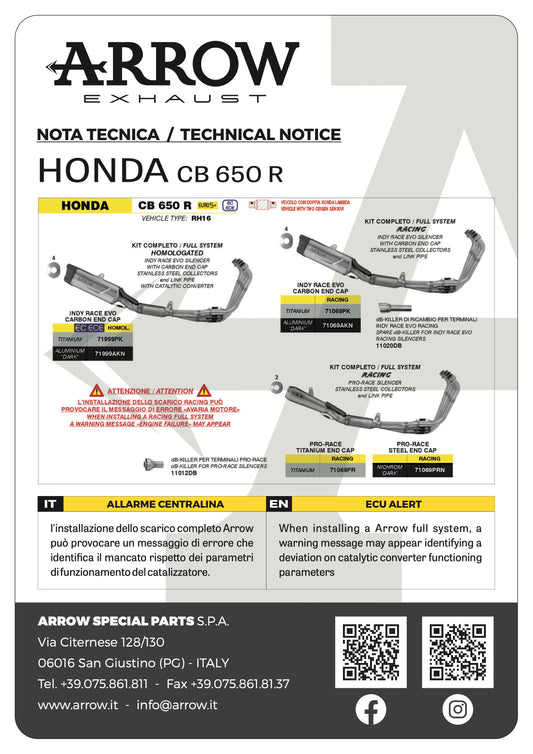 Arrow Full Exhaust System With Indy Race EVO Titanium Silencer Honda CB 650 R 2024-2026