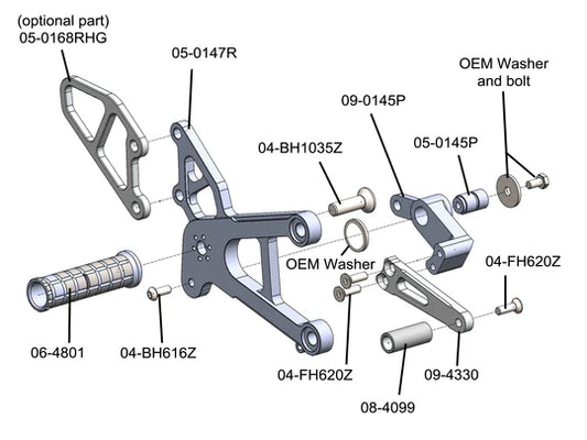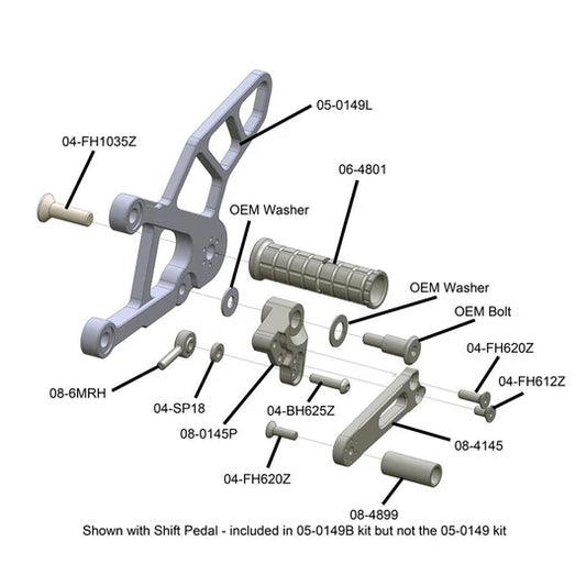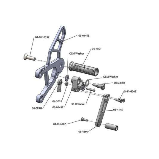 Woodcraft Rearset Kit - GP Shift w/ OEM QS Kawasaki ZX-6R 2019-2024