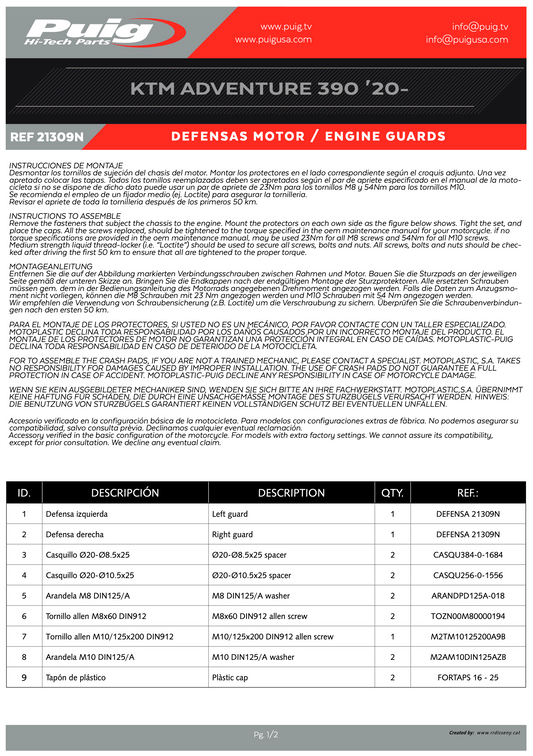Puig Engine Guards Crash Bars KTM 390 Adventure 2020-2024