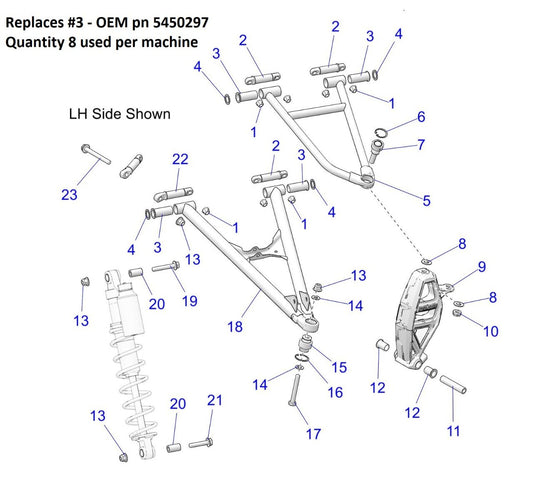 Speedwerx A-Arm Bushing Set of 8 Polaris Axys/Matryx Indy/Rush/Switchback/Voyageur/Titan Models 2015-2026