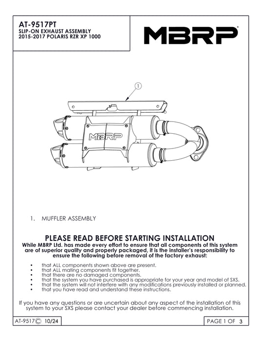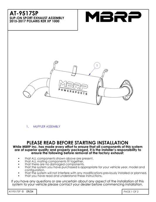 MBRP Oval Slip-on Sport Series Polaris RZR S 1000 2016-2025