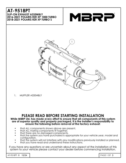 MBRP Oval Slip-on Sport Series Polaris RZR XP Turbo/S 2016-2021
