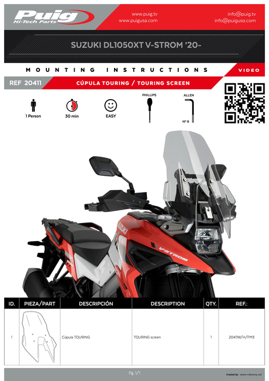 Puig Touring Windscreen w/ Visor Suzuki DL1050 V-Strom 1050 2020-2025