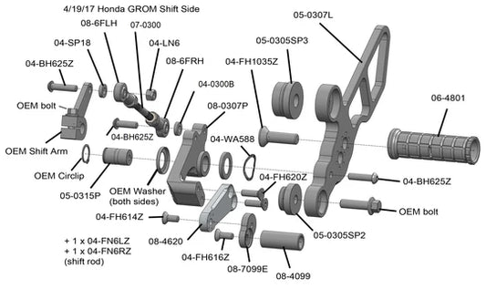 Woodcraft Complete Rearset Honda Grom 125 2014-2020