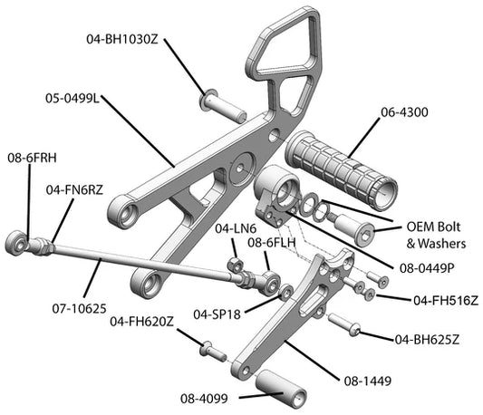 Woodcraft Rearset - GP/STD Yamaha YZF-R6/R6S 2003-2009