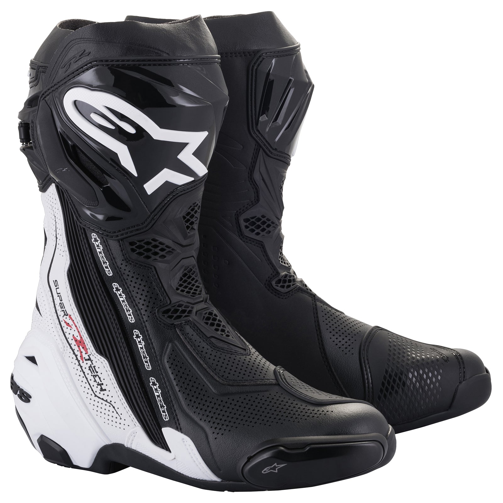 Almost every component of the Supertech R Vented Boots, Alpinestars' definitive racing footwear worn by champions past and present, has undergone a rigorous program of upgrades to further enhance their performance features. Extensive perforations throughout maximize airflow, while innovations derived from Alpinestars' top-flight racing involvement include a newly redesigned front flex area, rear bellow, top gaiter, shifter and shin plate, shin slider, and inner bootie. These enhancements elevate the comfort, protection, and performance of these boots to a new class-leading high.