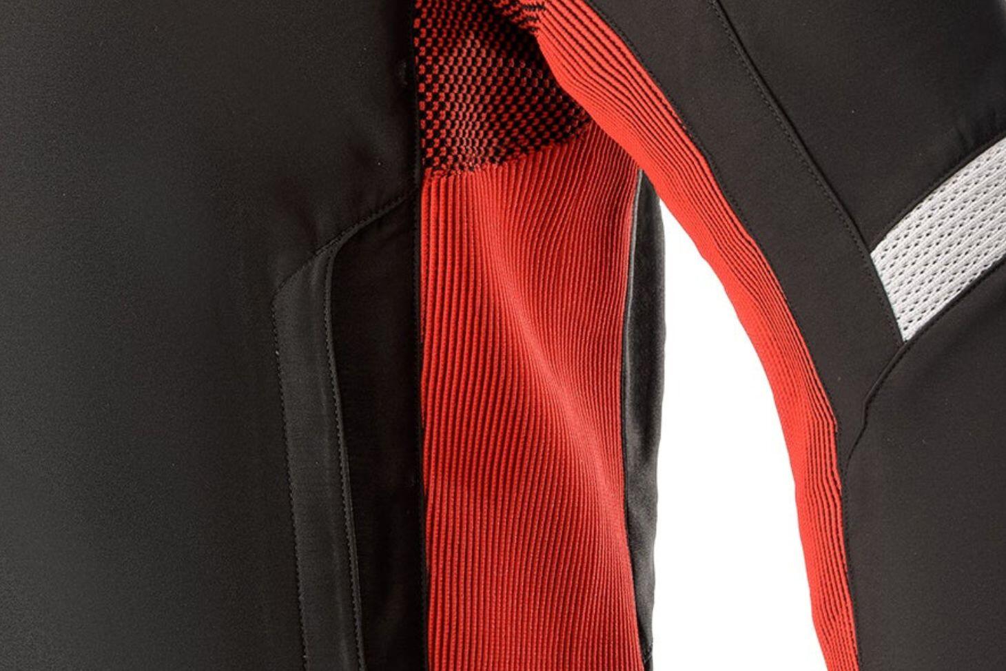 Sport/urban textile jacket with advanced rideknit stretch fabric, large rear utility pocket, and CE level 1 armor