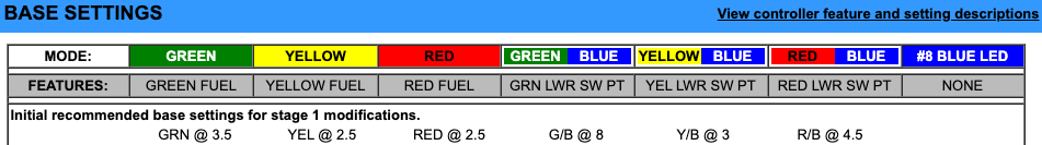 The GREEN zone engages at 1500 rpm with a GREEN/BLUE setting of 8.