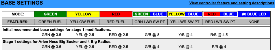 The GREEN zone engages at 1400 rpm with a GREEN/BLUE setting of 8.