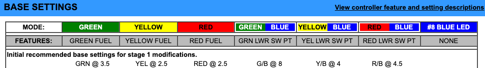 The GREEN zone engages at 1400 rpm with a GREEN/BLUE setting of 8.
