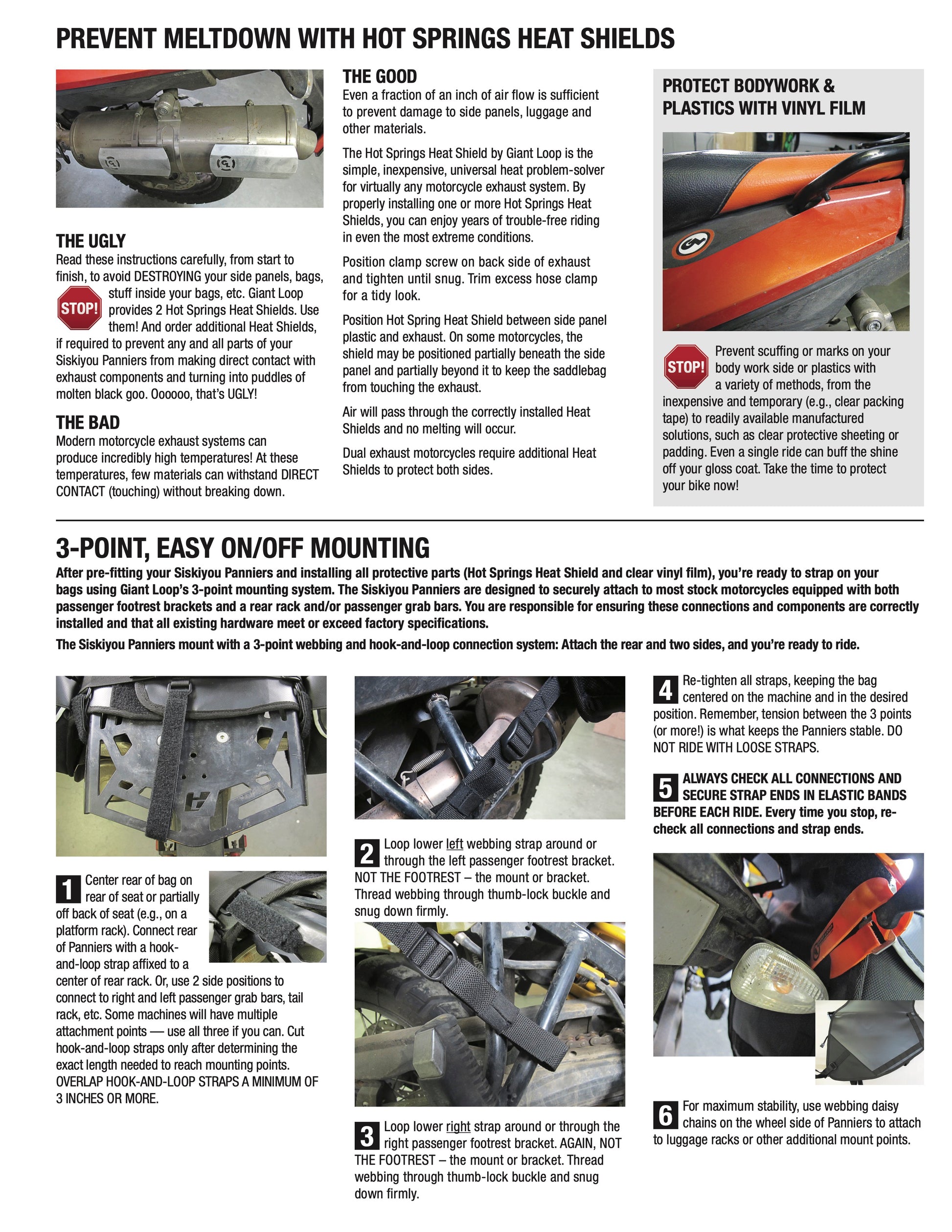 Siskiyou Panniers combine the convenience of top-loading hard panniers with the performance benefits of Giant Loop’s world-travelled soft luggage. Constructed with flexible, impact-resistant, and waterproof materials, Siskiyou Panniers deliver the ultimate lightweight, rugged, and compressible gear packing solution for on- and off-road motorcycle adventures. Choose the Siskiyou Panniers for multi-day rides when quick, top-loading gear access is a priority.