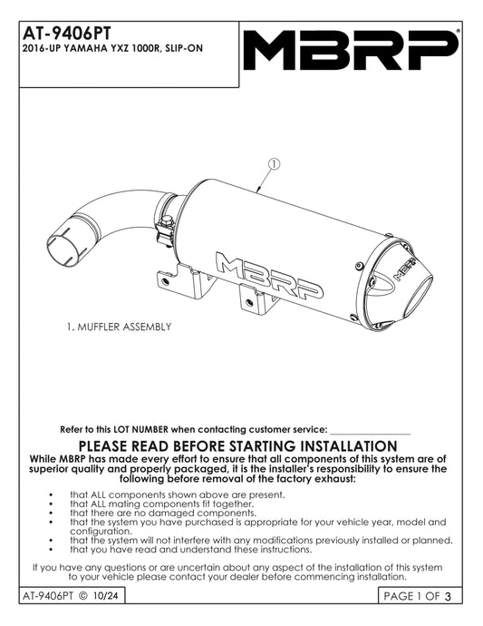 MBRP 5" Single Slip-on Performance Series Yamaha YXZ 1000R 2016-2025