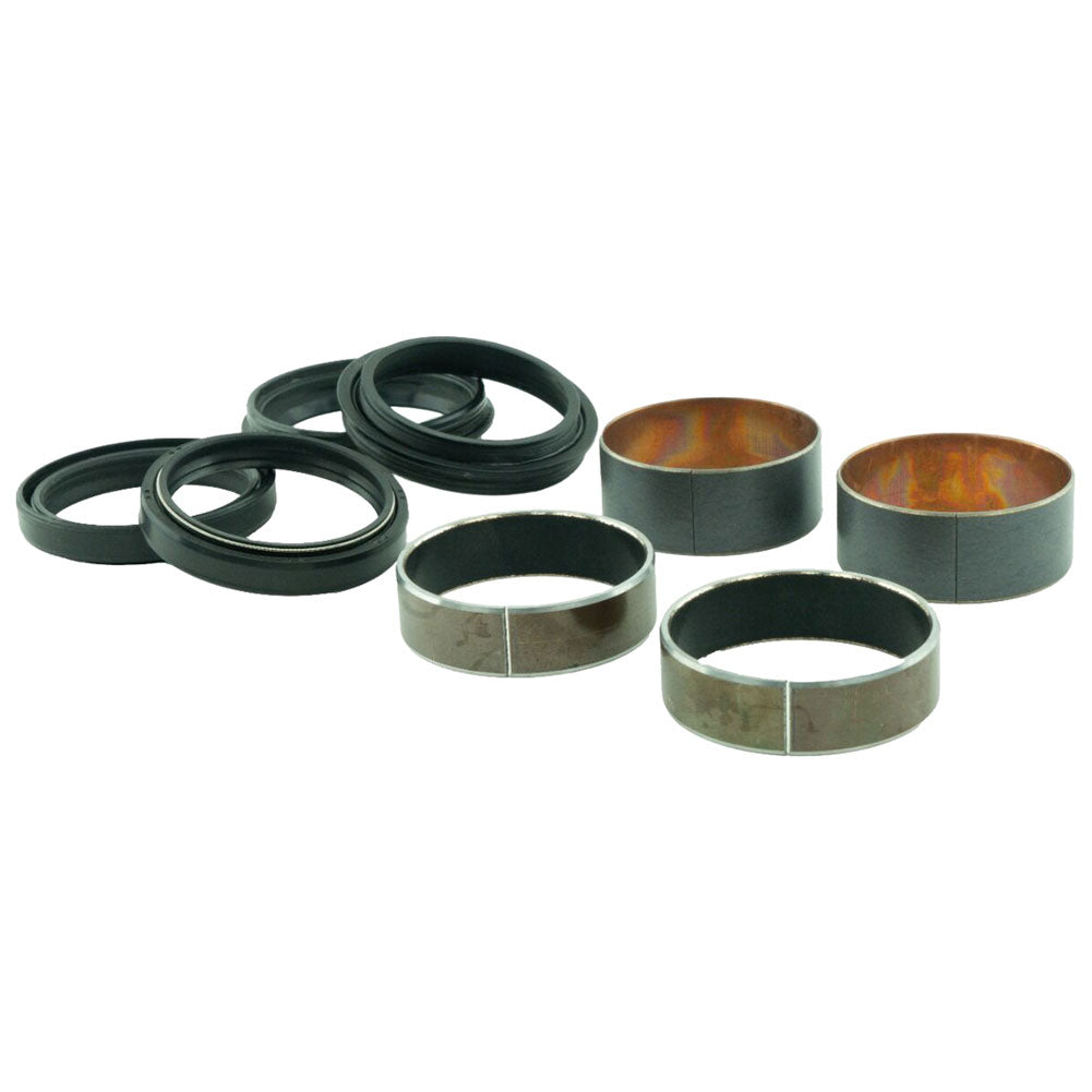 K-Tech front fork service kits combine NOK oil & dust seals plus guide & slide bushes that are a direct replacement for the original equipment parts. NOK are chosen as original equipment by all Japanese suspension manufacturers for their quality and durability. Included in each kit are the parts below.
