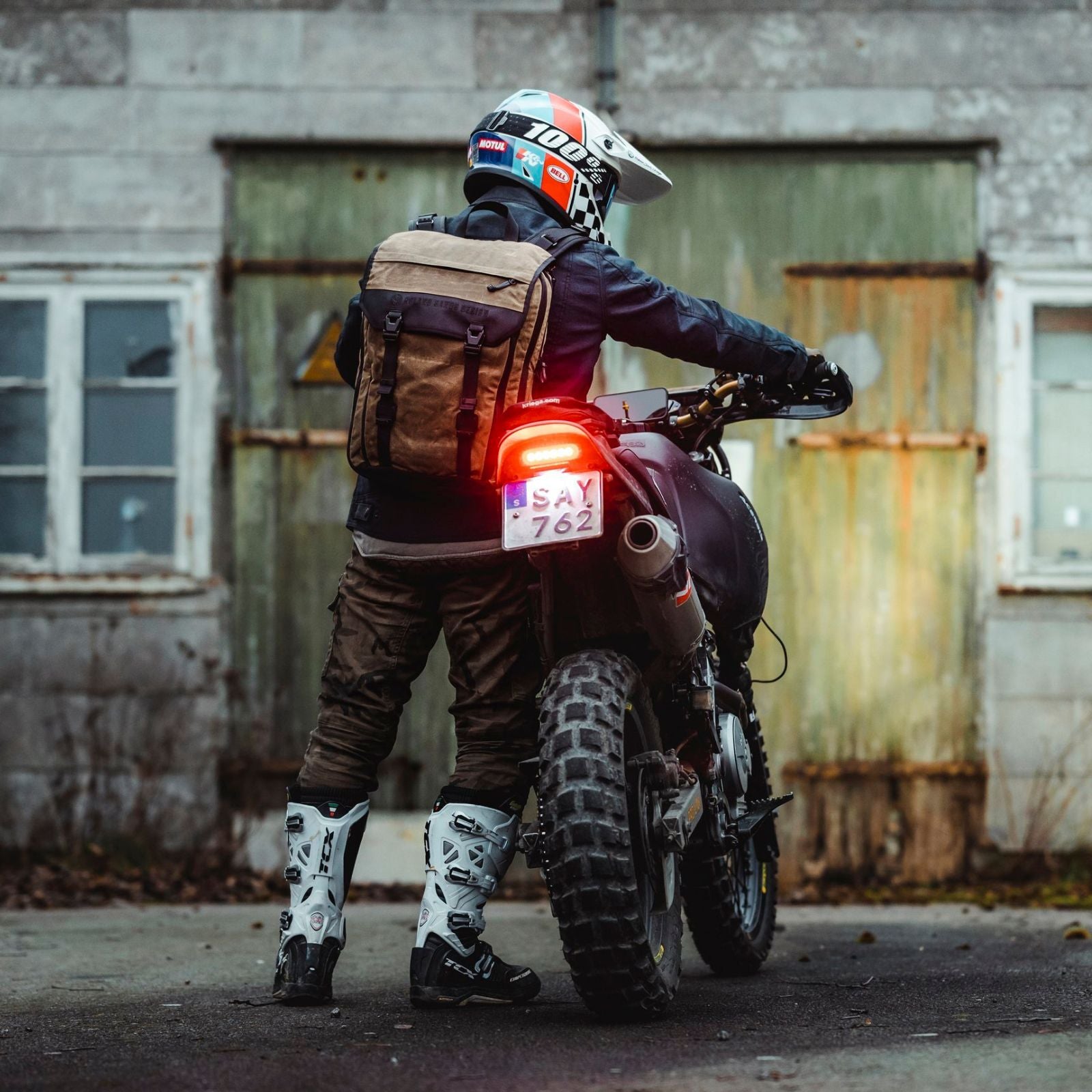 The Roland Sands Design X Kriega Roam 34 Backpack combines RSD’s proprietary waxed cotton and 1000D Cordura® with Kriega’s Quadloc-Lite™ harness, offering a perfect blend of classic style and unmatched functionality. Featuring a waterproof roll-top 15" laptop pocket, a 4-liter front compartment with organizer pockets, and an expandable main compartment (22 to 30 liters), it’s ideal for carrying a full-face helmet or packing for errands. Additional features include a fleece-lined goggle pocket, hydration compatibility, and optional waist and sissy bar straps.