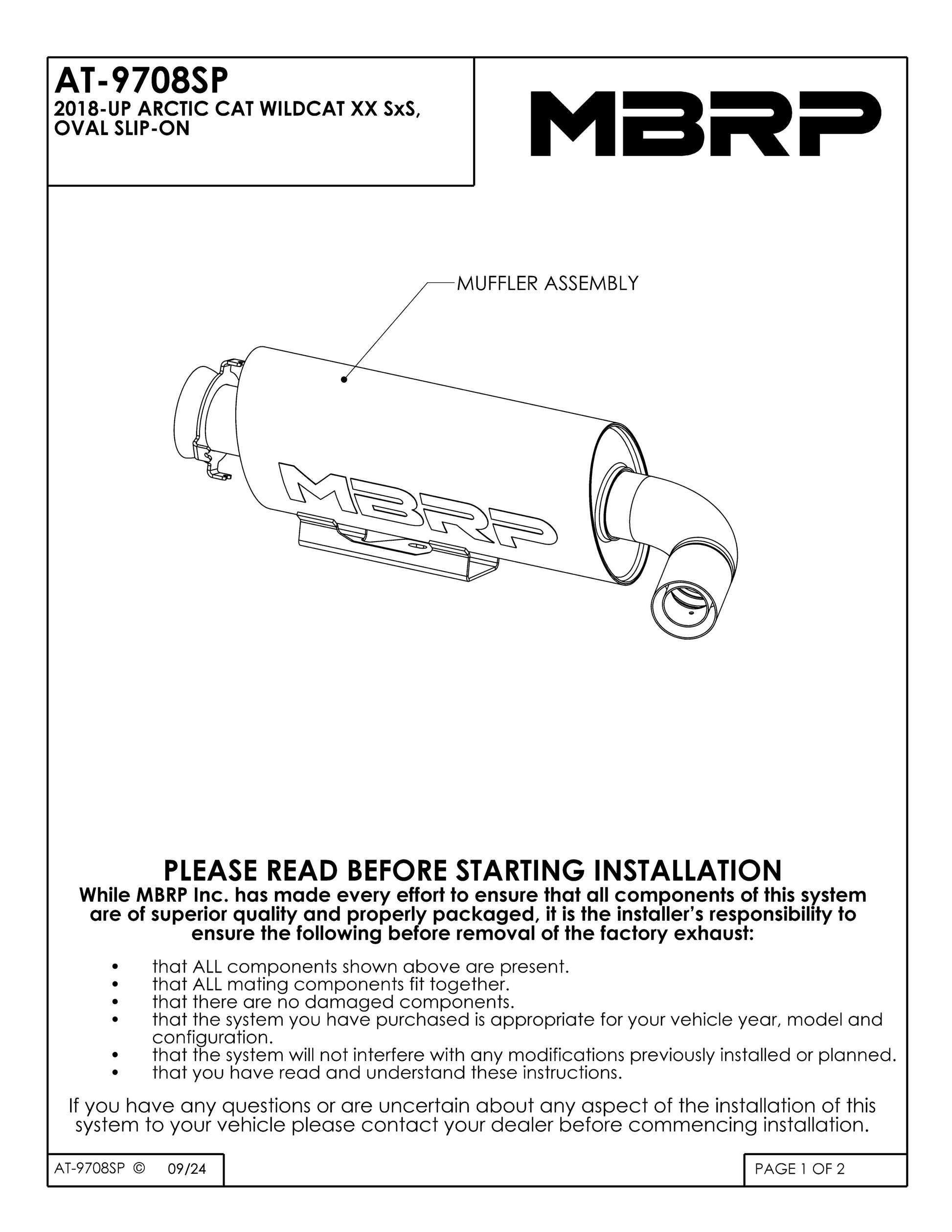 Upgrade your 2018-2019 Textron Wildcat XX | 2020-2024 Arctic Cat Wildcat XX with the MBRP® Sport Series, Chambered Core, Slip-On Exhaust. 1-Year Warranty included.