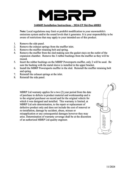 MBRP Race Exhaust Ski-Doo 600RS 2024-2026