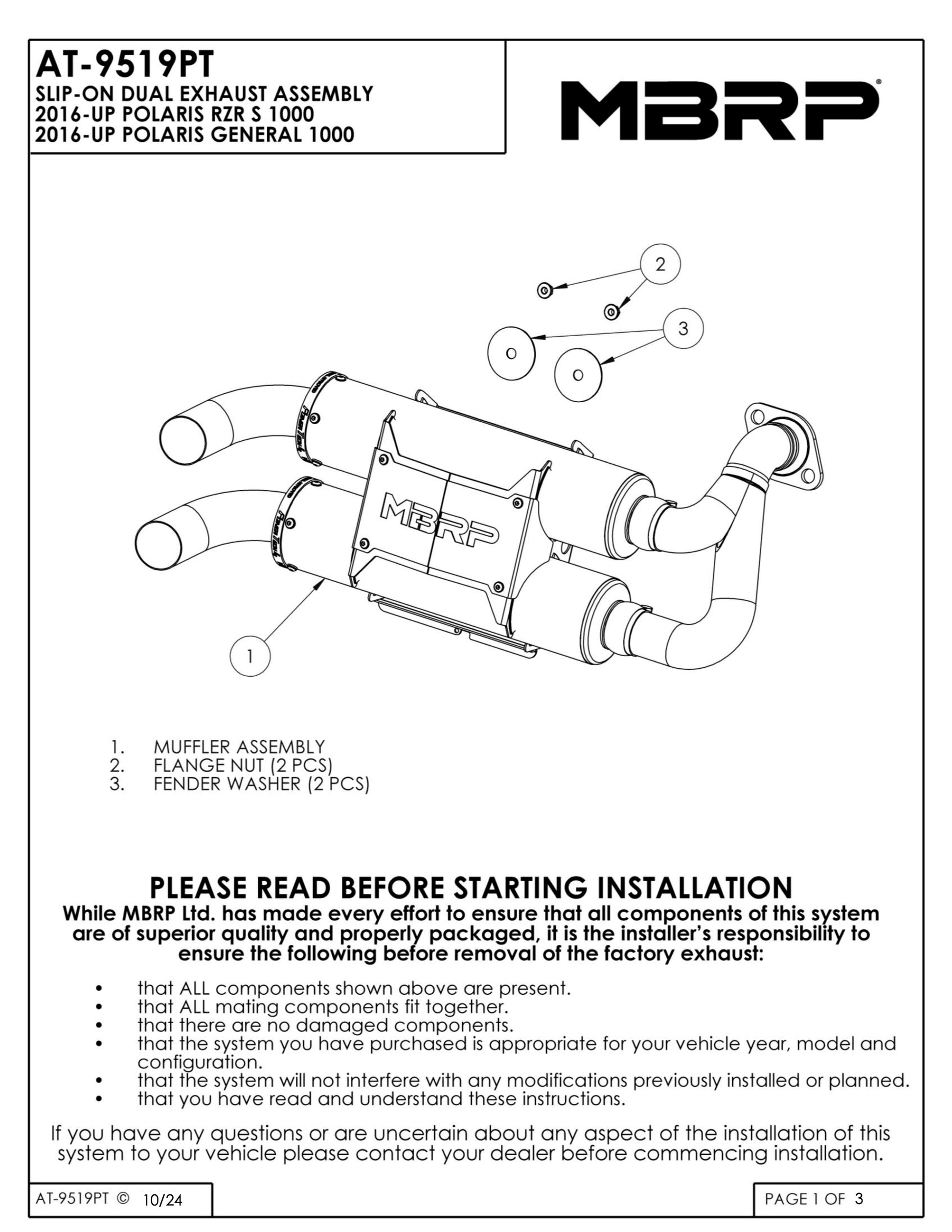 Upgrade your 2016-2026 Polaris RZR S 1000, General 1000 with the MBRP® Performance Series, Dual Straight Core, Slip-On Exhaust. 1-Year Warranty included.