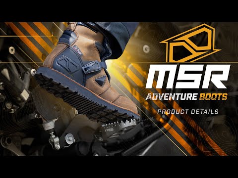 The MSR Adventure Boot is a quality, European made boot designed for serious adventure riders. Waterproof construction with the Te-Por waterproof membrane ensures you’ll stay dry. The boot features genuine full-grain leather, steel shank, anti-slip sole, replaceable buckles, injection molded protection, and a comfortable inner liner and insole. With ADV specific demands in mind, this boot balances protection and comfort for all-day use on and off the bike.