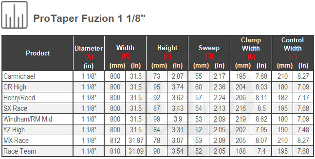 The Fuzion handlebar is a concept in high performance control systems. The revolutionary flex locking system allows riders to choose between a stiffer, more controlled handlebar feel or a softer more shock absorbing feel depending on terrain conditions. Changing the bar from "Locked" to "Unlocked" takes only seconds. The bar itself utilizes ProTaper's exclusive aluminum alloy computer profiled in a 5mm wall design for the ultimate in lightweight strength. Oversize diameter handlebars, without cross bars, were invented, and patented, by ProTaper.