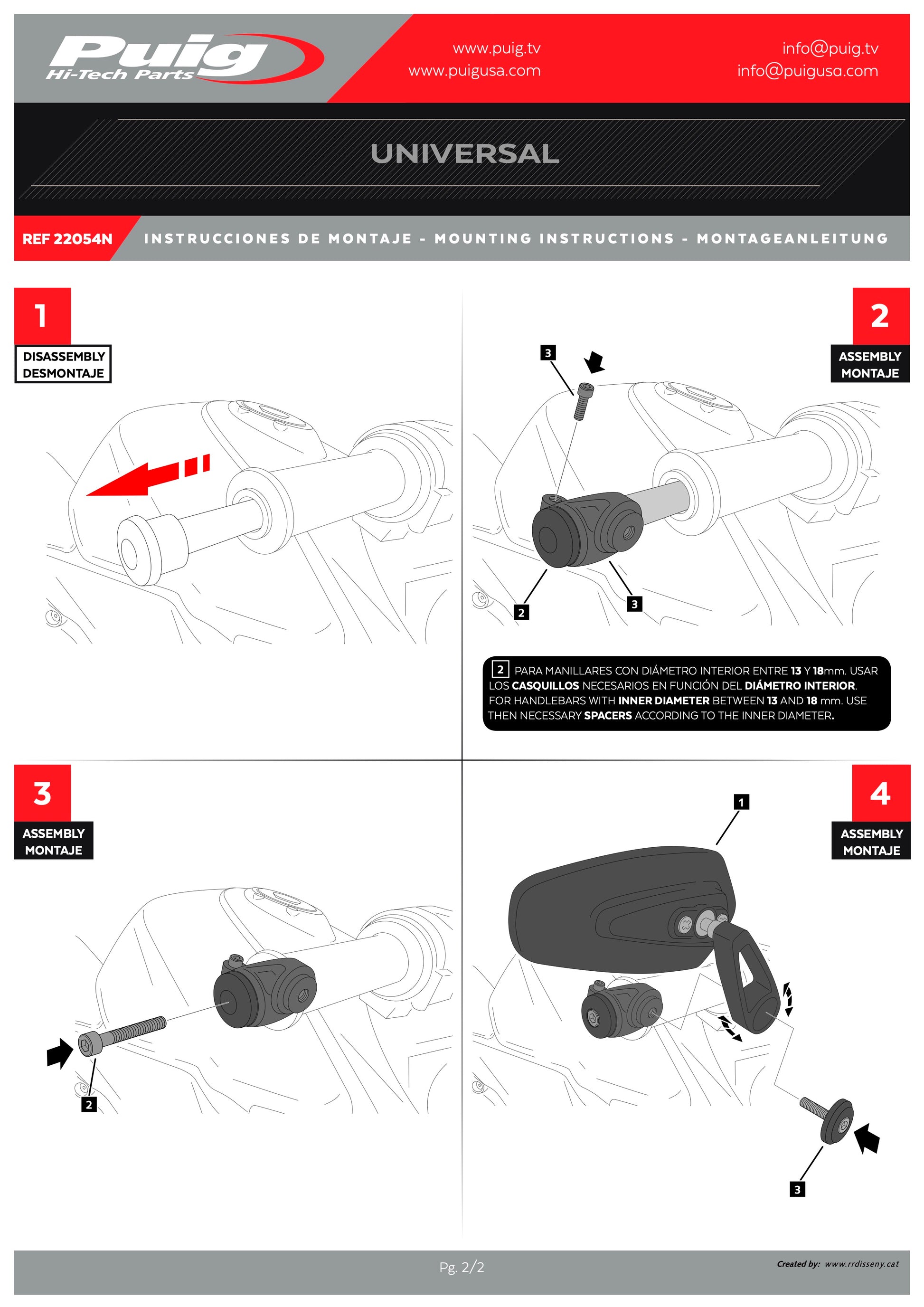 In motorcycle models that do not require a specific adaptor (if no reference is indicated below) it is necessary to remove the internal fixing mechanism of the original bar end weight.
