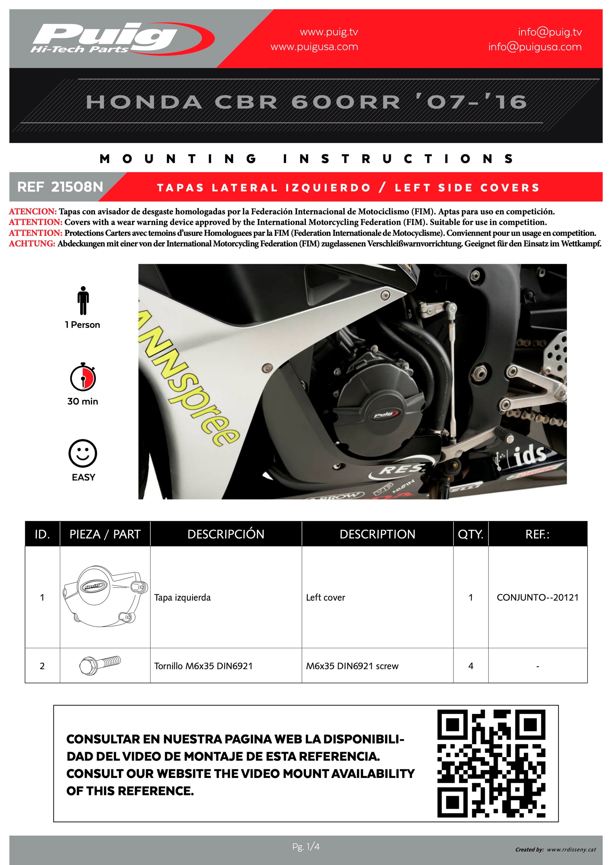 - HONDA CBR 600RR 2007, 2008, 2009, 2010, 2011, 2012, 2013, 2014, 2015, 2016