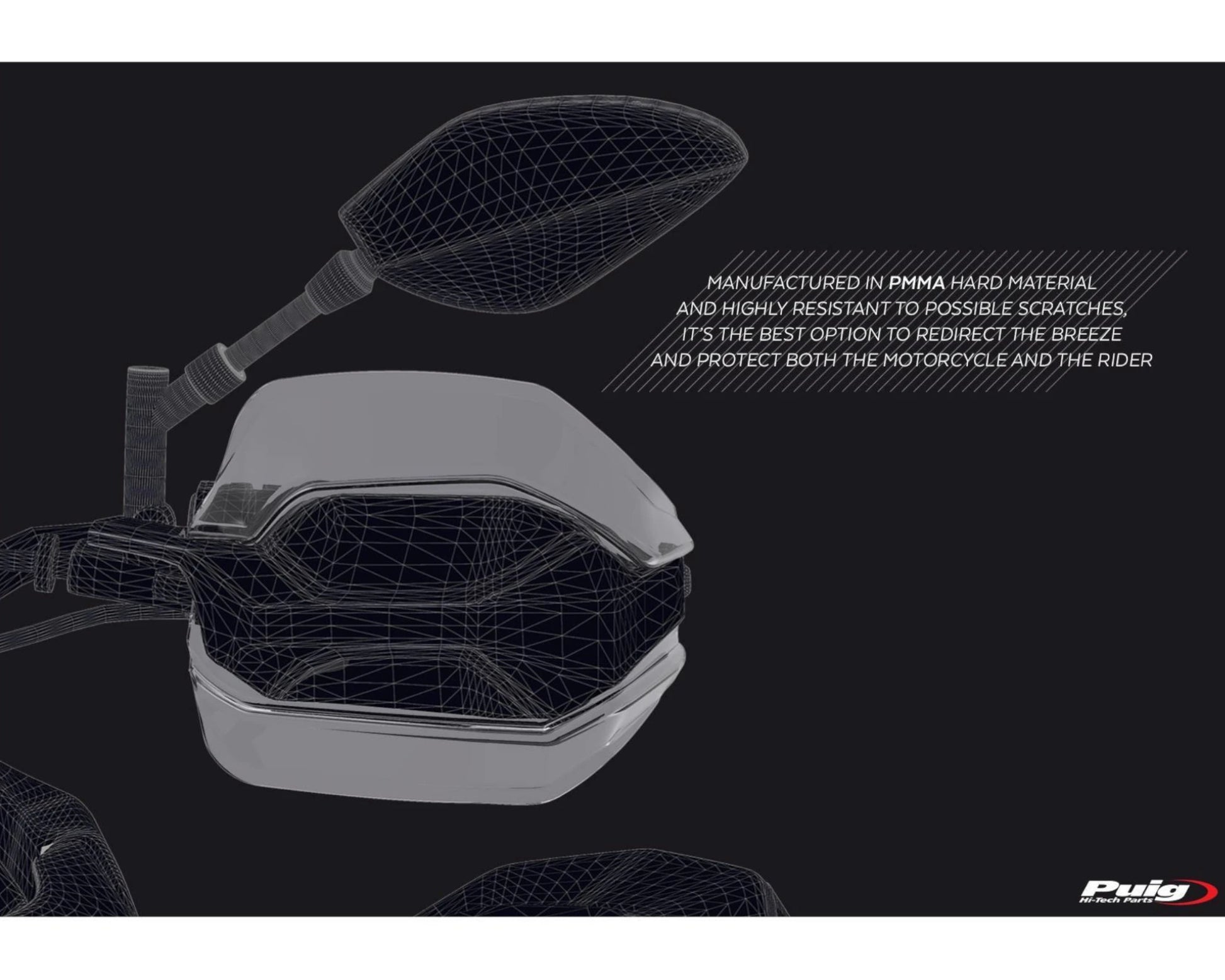 Add extra protection to your Crosstourer motorcycle’s handguards with the PUIG extension handguards. Manufactured in PMMA (Polymethylmethacrylate) hard material and highly resistant to possible scratches, it’s the best option to redirect the breeze and protect both the motorcycle and the rider.