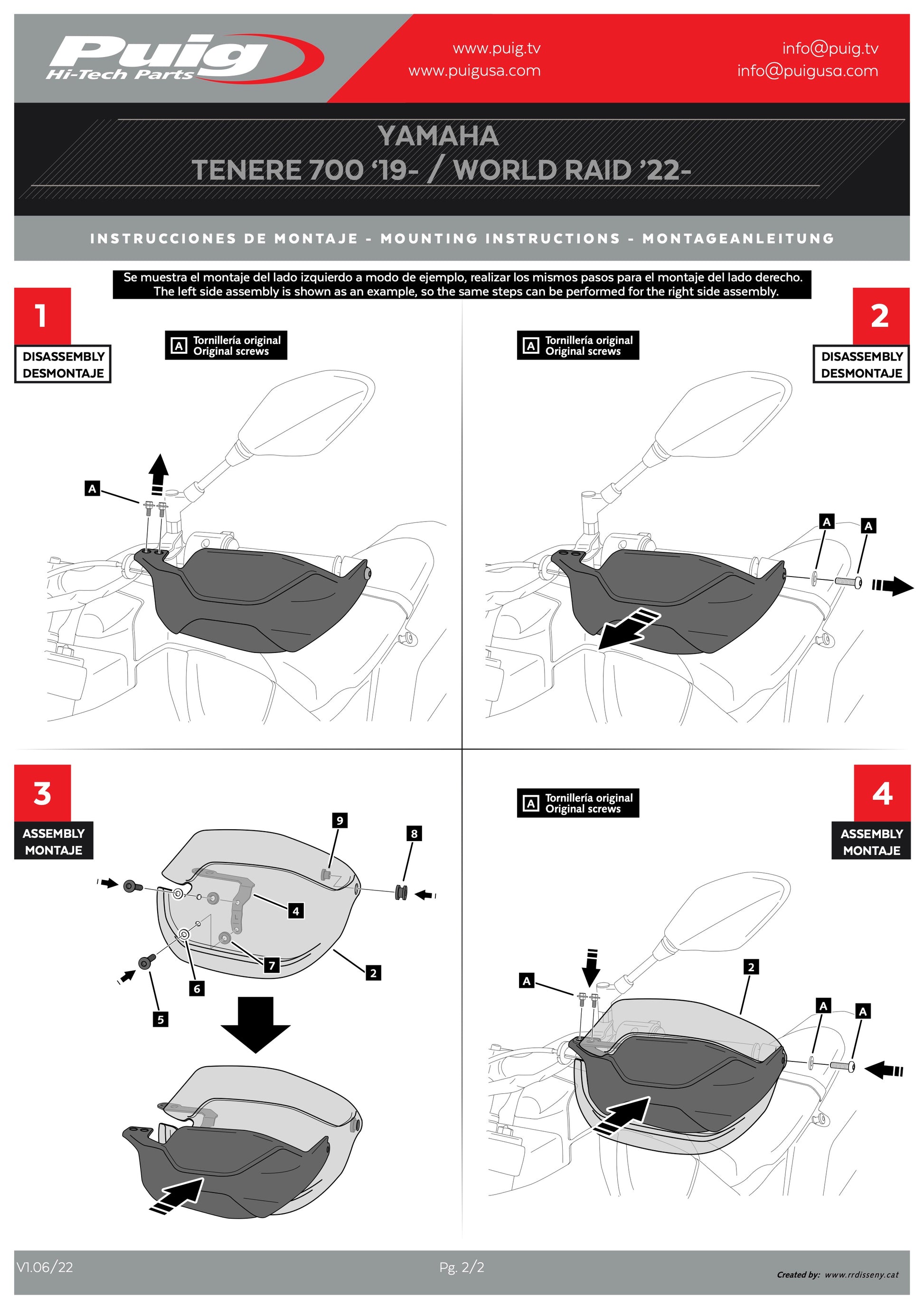 PUIG provides an instruction booklet and a mounting kit to facilitate the installation of the part to the motorcycle.