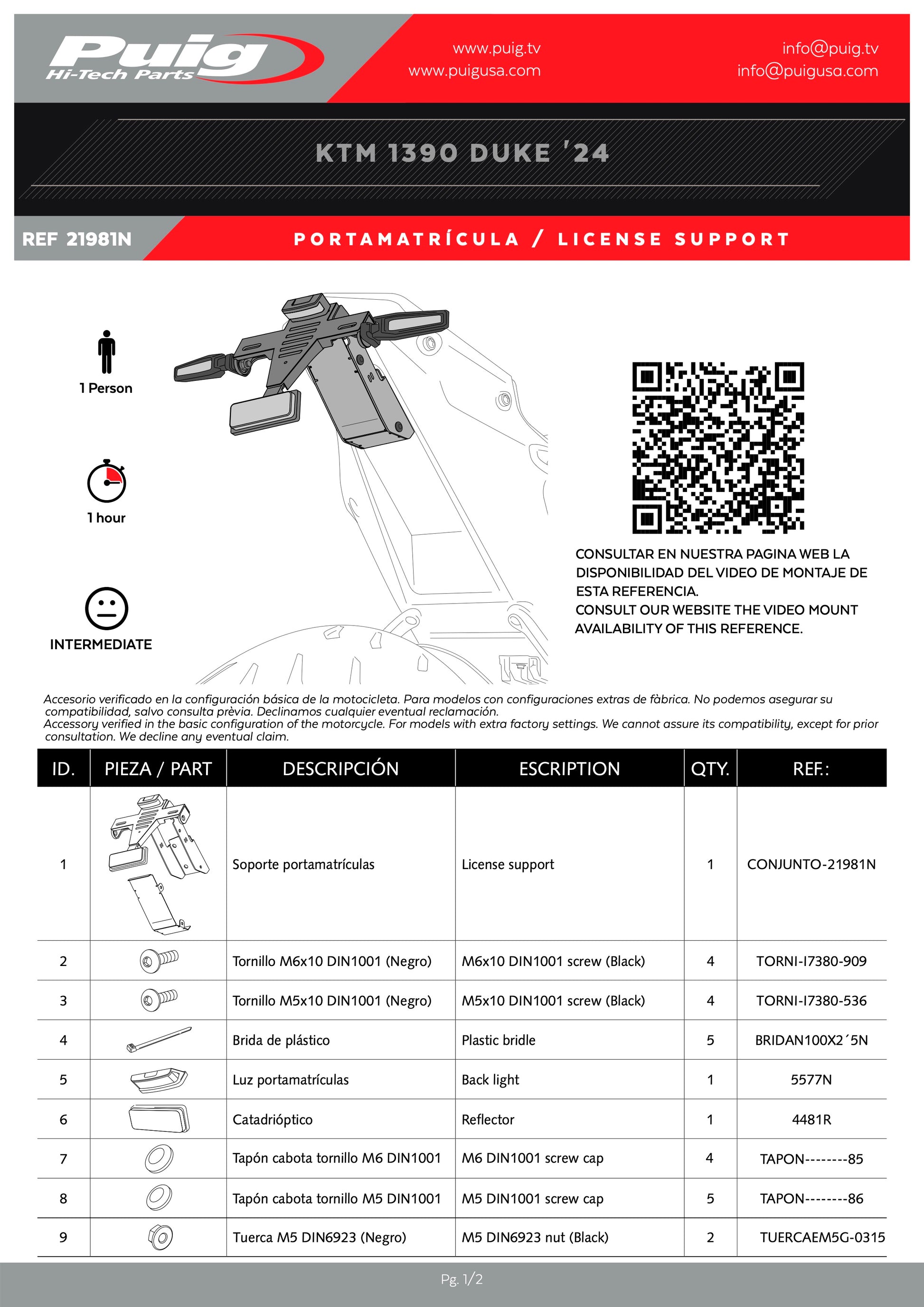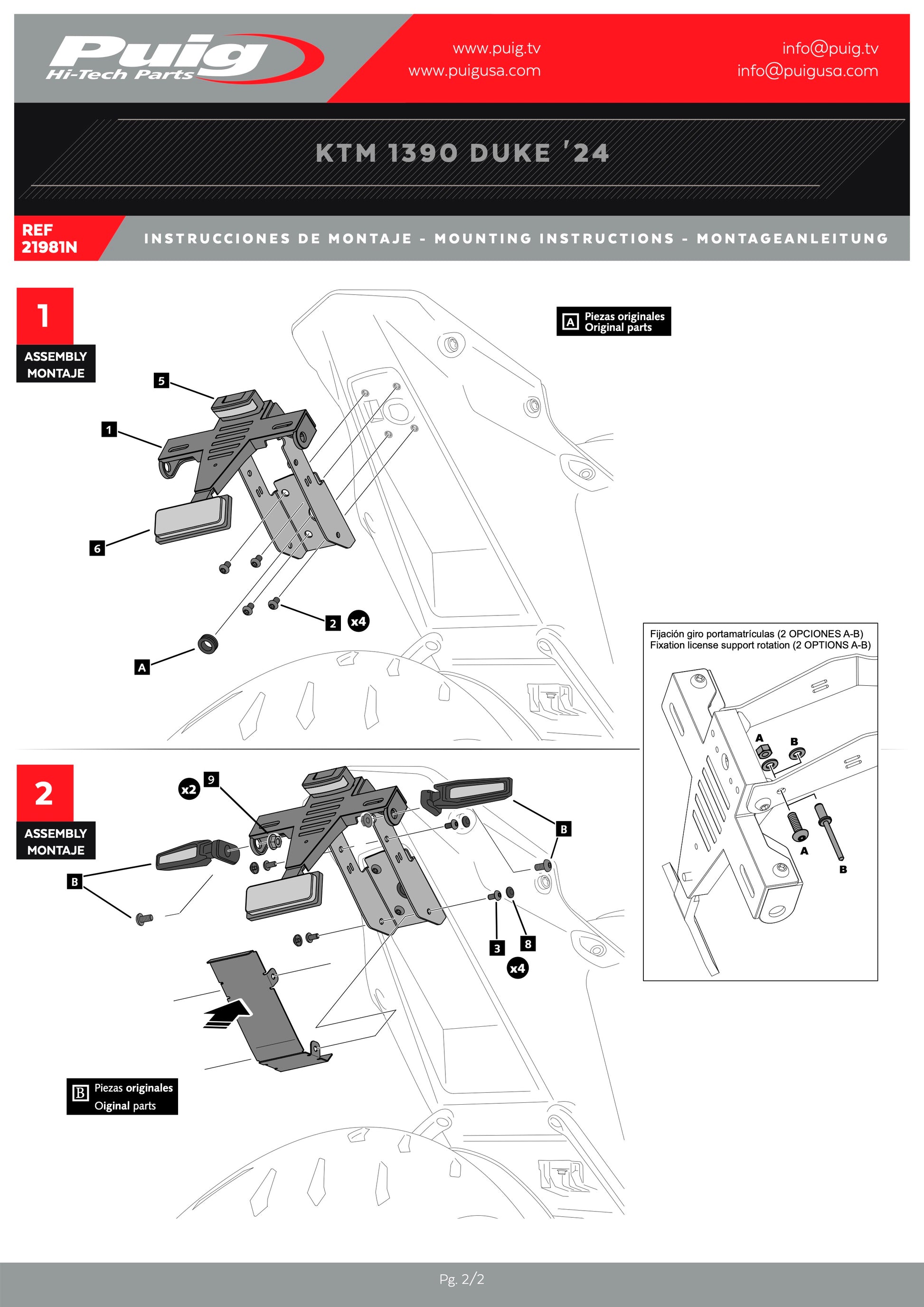Puig License Plate Holders KTM 1390 SUPER DUKE R 2024-2025
