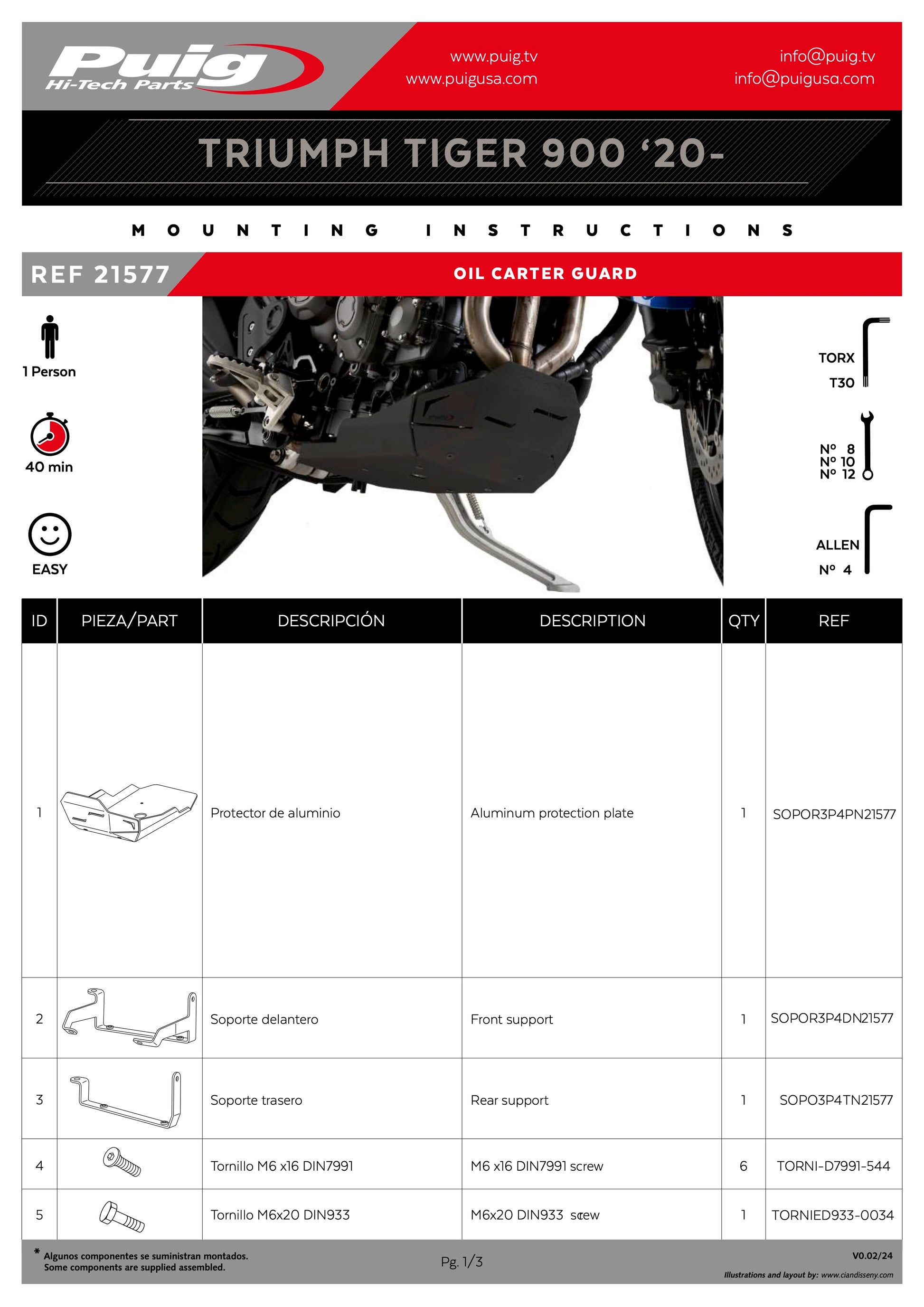 Specifically designed for the Triumph Tiger 900 and larger in both length and height than the original protector it replaces, its installation significantly increases protection for the oil-case and exhaust collector area from the impact of small objects such as stones, mud, etc., that we may encounter during off-road routes aboard the Tiger 900.