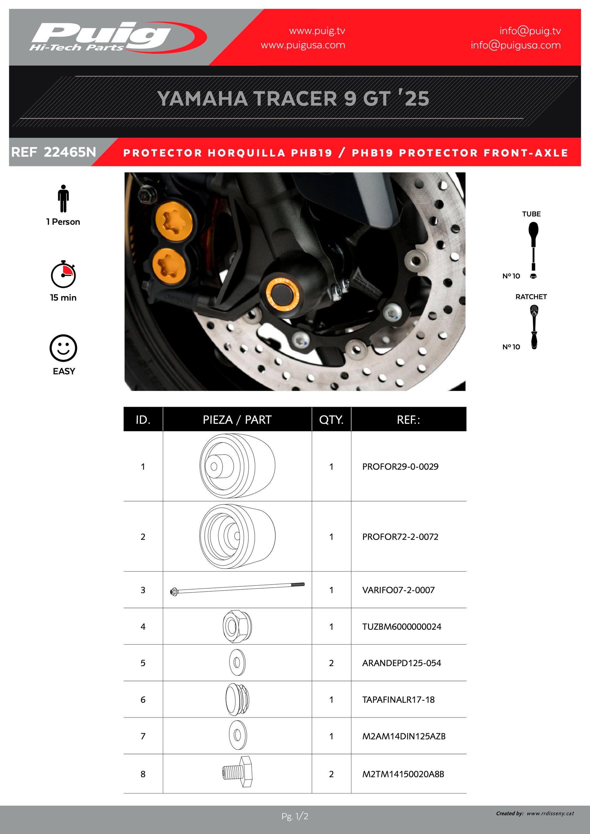 Protect the fork of your bike and dress it up with a competition touch, with the PUIG axle slider PHB19.