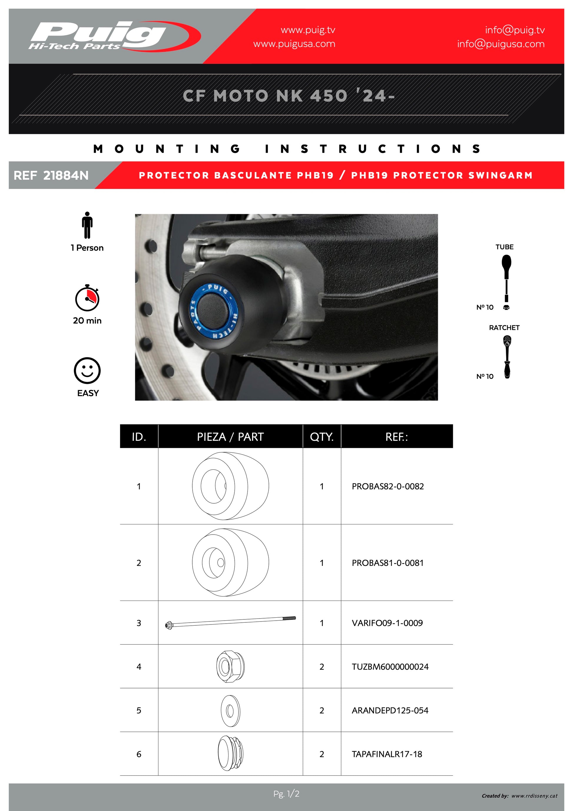 Puig PHB19 Swing Arm Protector CFMOTO 300 NK 2023-2025