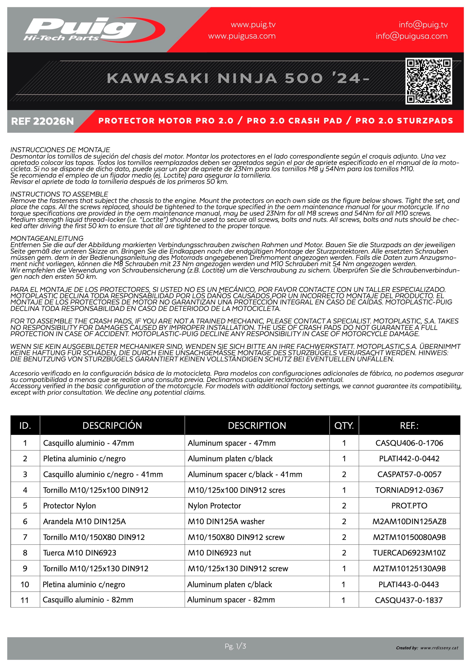 Puig Pro 2.0 Frame Sliders KAWASAKI NINJA 500 2024-2025