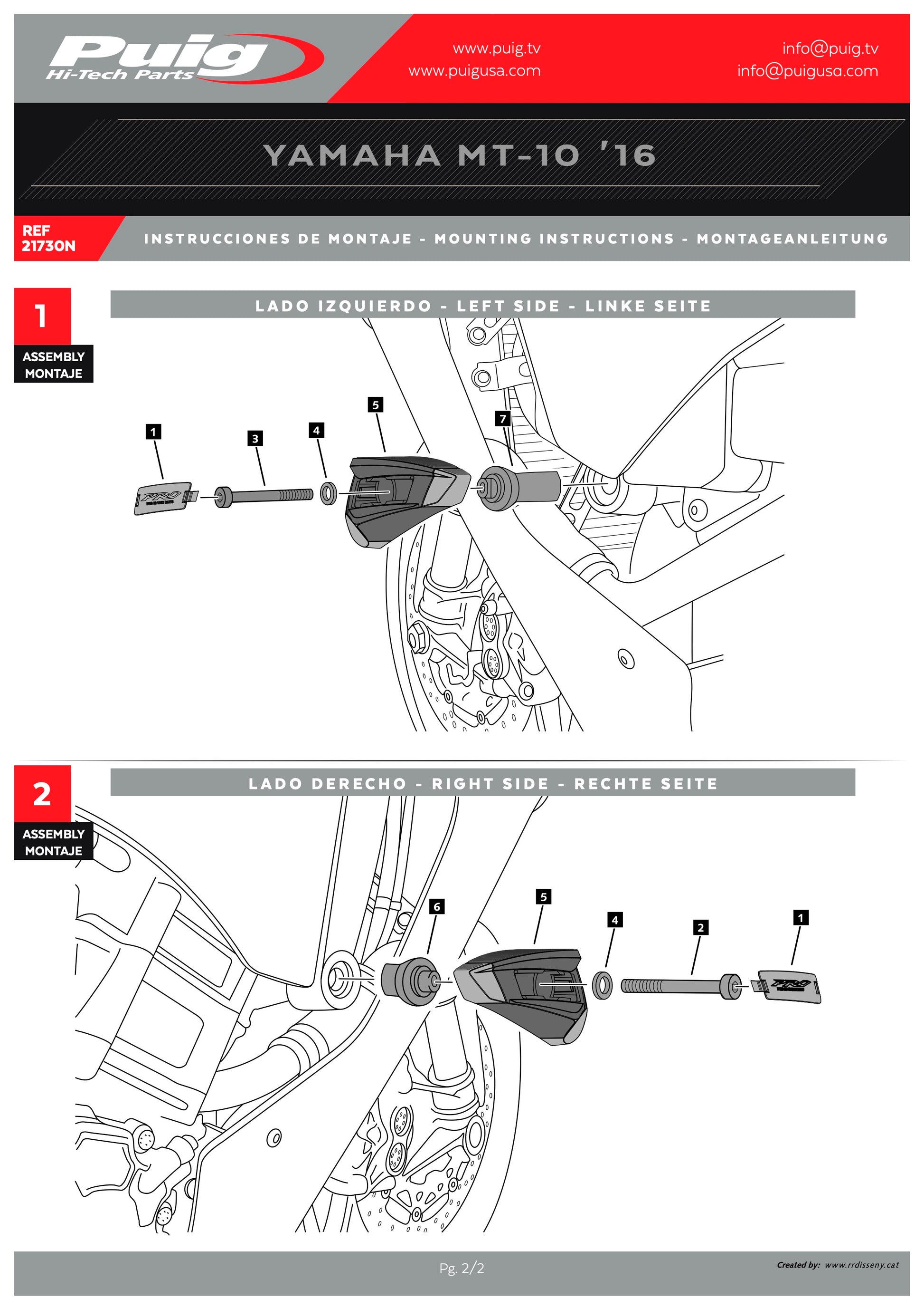 Puig Pro 2.0 Frame Sliders YAMAHA MT-10 2017-2025
