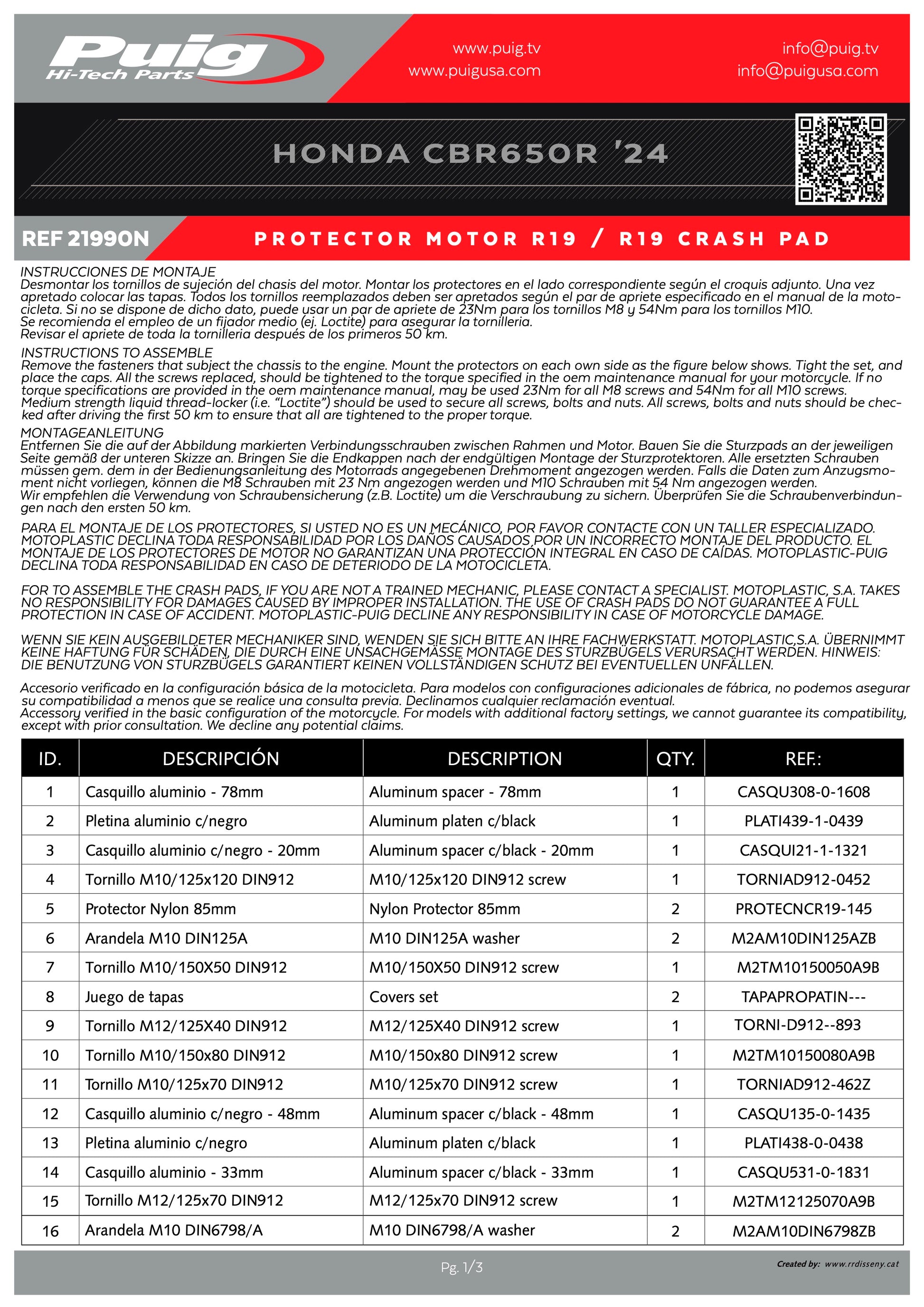 The sliders are offered with gray rubber by default, but Puig has a wide variety of colors available to fit your motorcycle’s look. In addition to the rubber spare parts, Puig also offers spare parts for Nylon sliders portion.