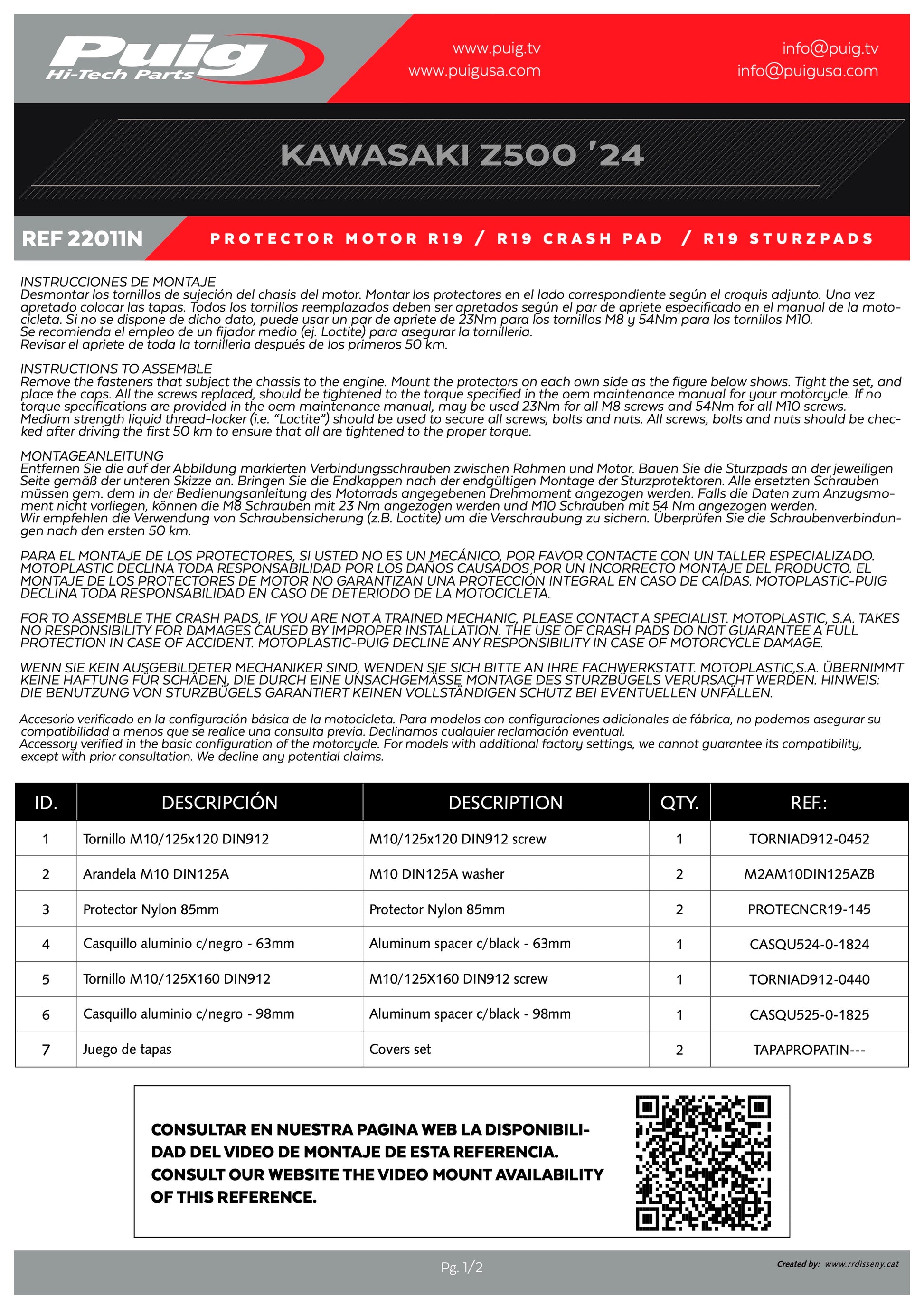 Add protection and safety to your motorcycle with Puig’s R19 Frame sliders. These protectors guarantee integral protection of the chassis and engine of your motorcycle, as well as providing additional protection to your knees with the included rubber endings.