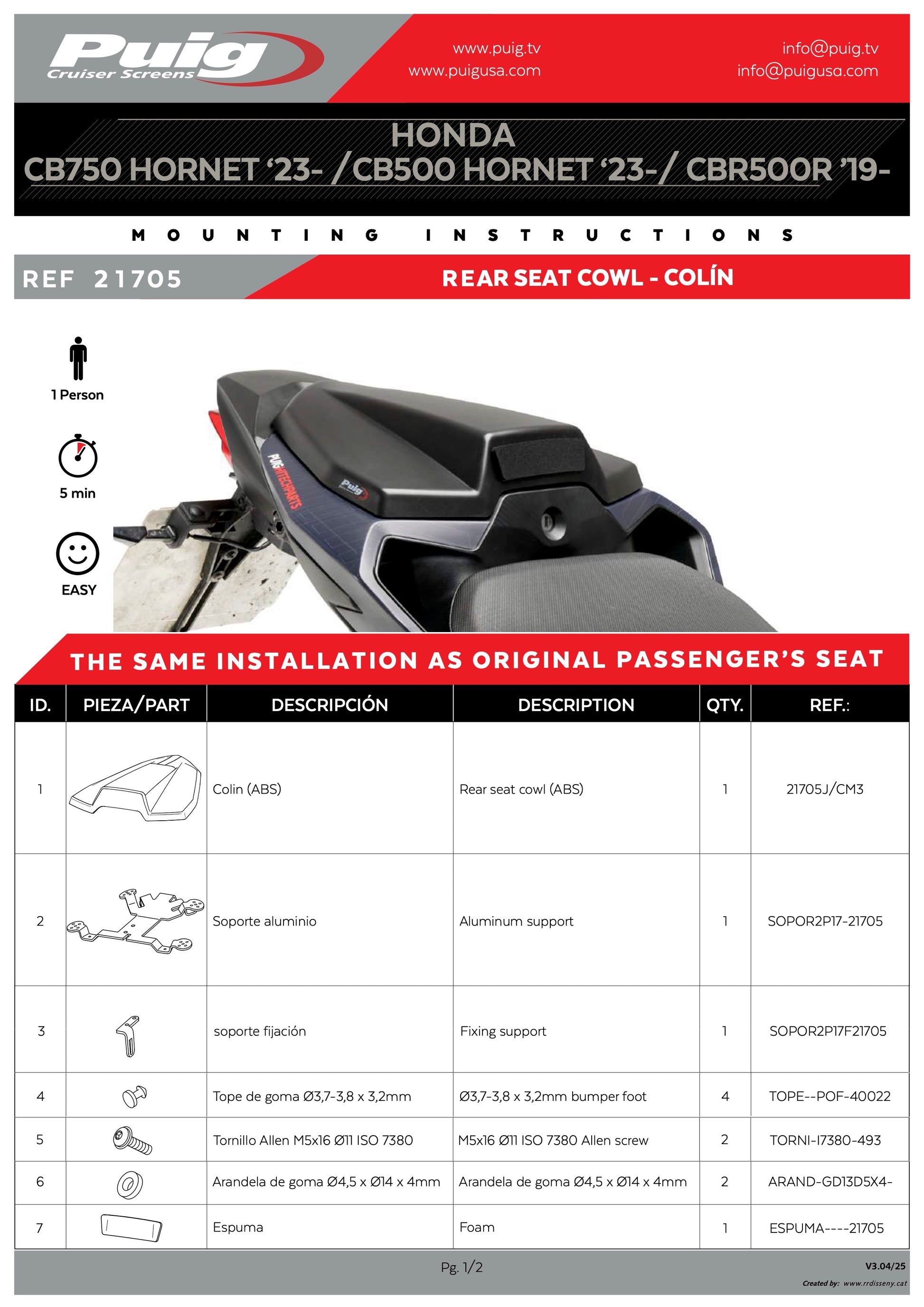 Its installation is very straightforward, as the Puig tailpiece uses the same or similar anchoring system to make the tailpiece installation as simple as possible.