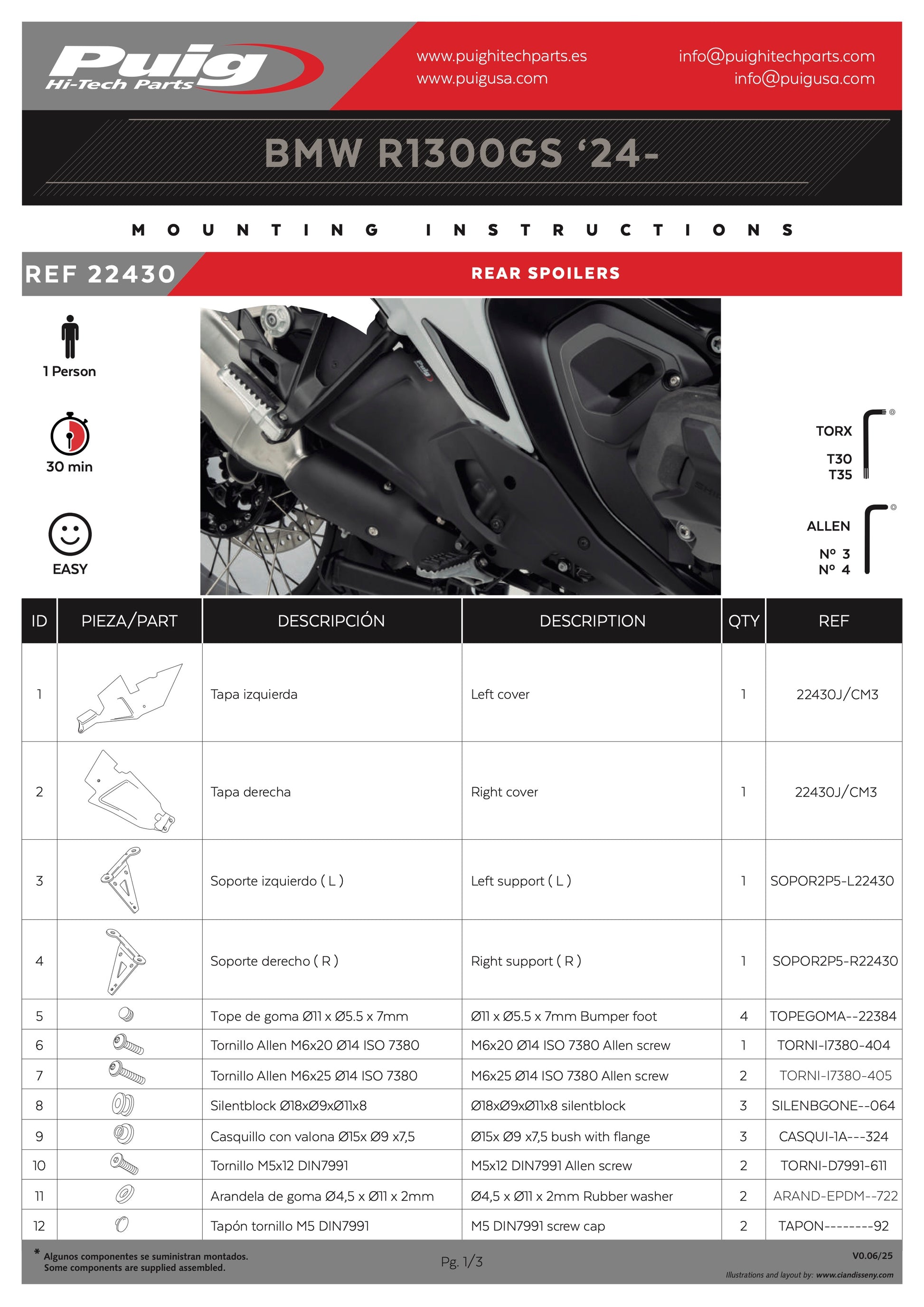 The piece is available in different colors depending on the BMW model that you have and installation will not be a problem since it comes with Puig's classic visual instructions.