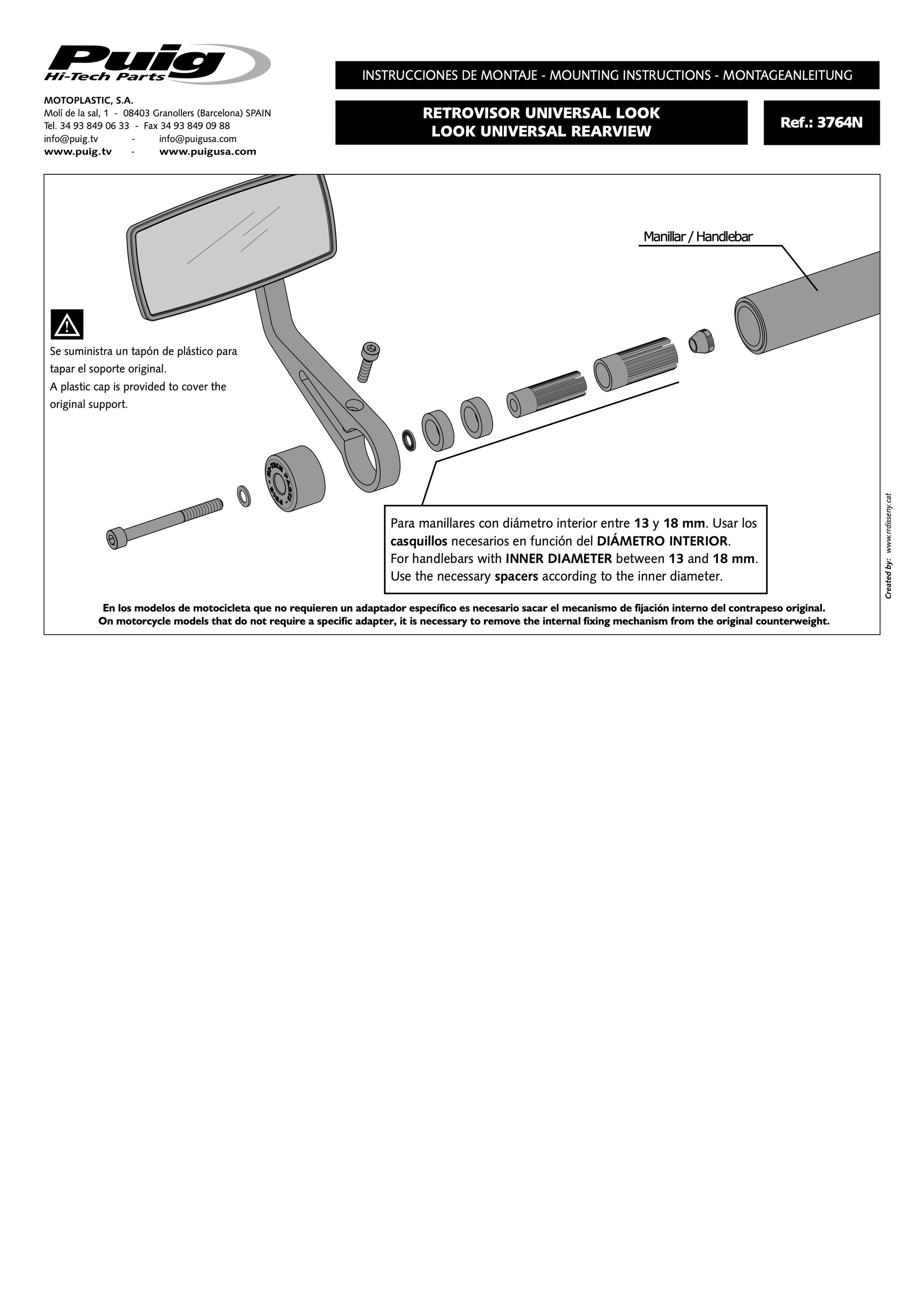 In motorcycle models that do not require a specific adaptor (if no reference is indicated below) it is necessary to remove the internal fixing mechanism of the original bar end weight.