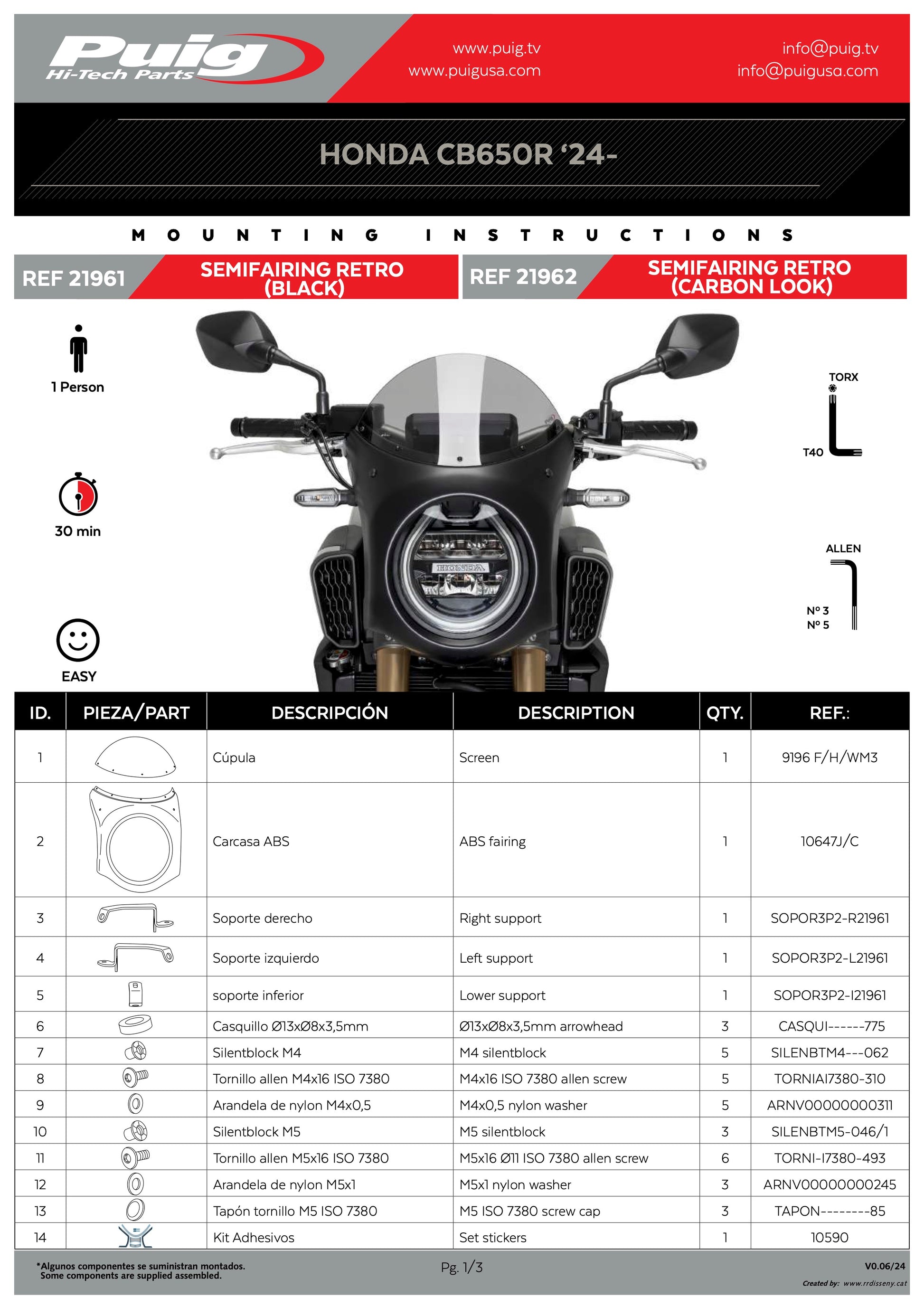 Puig has two types of fairings depending on the diameter of the headlight of your bike: 195mm or 180mm. In addition, Puig has created for the most popular models, a support with a specific adhesive kit. If you need a universal model, Puig has a mounting kit that allows you to attach the piece to various motorcycle models.