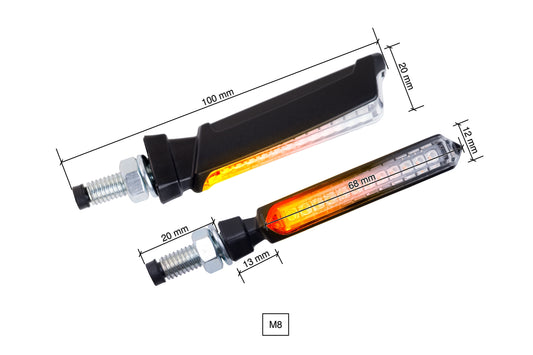 Set of Sequential color Black with Clear Lens of LEDs 56x12mm 12V 1W Thread M8