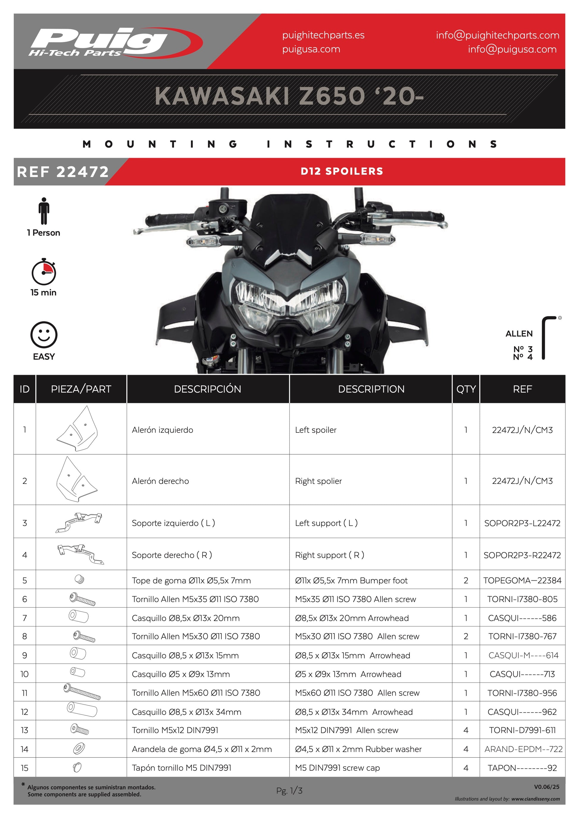 Puig Spoilers D12 Kawasaki Z650 2020-2025