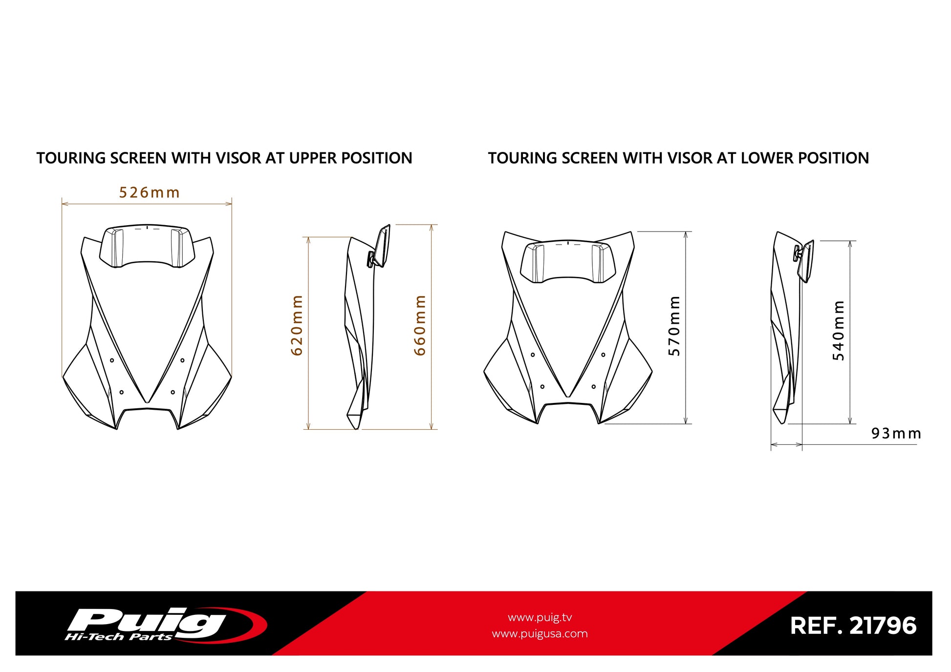 For assembly, PUIG provides instructions with mounting tips, so you can quickly enjoy the touring windscreen on your motorcycle.
