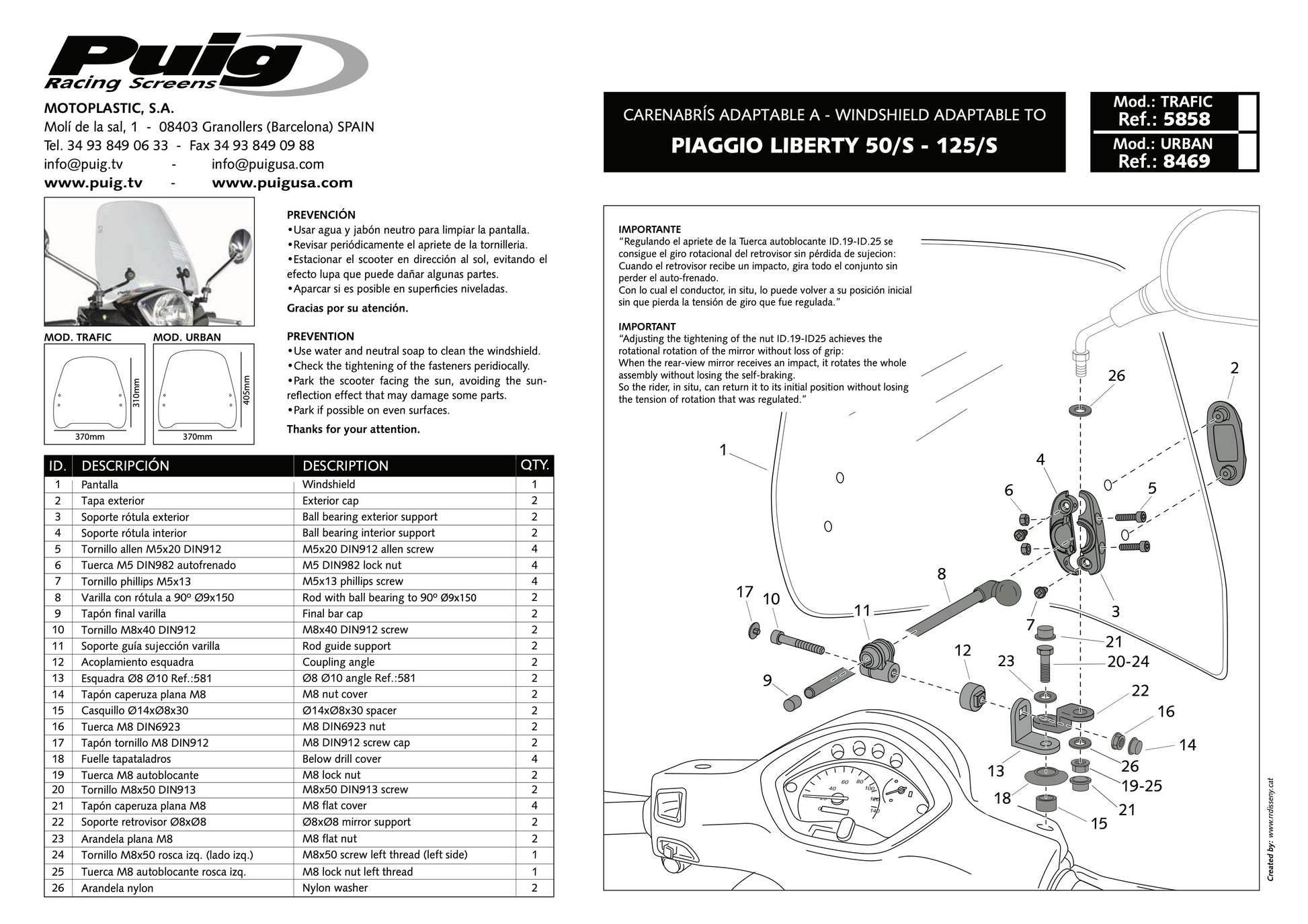 Puig Urban Windscreen Piaggio Liberty 125 2001-2025