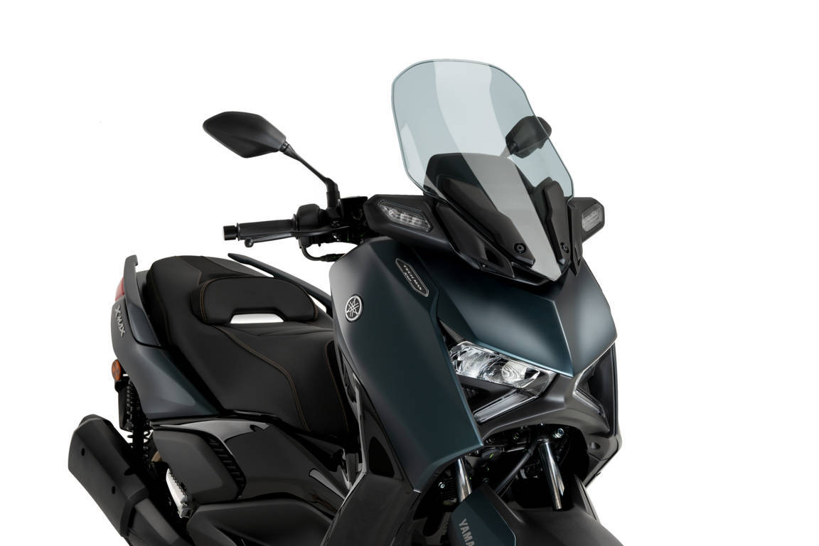 The Puig V-Tech Touring screen for Yamaha XMAX 125-300 2023 is available in clear and light smoked colors