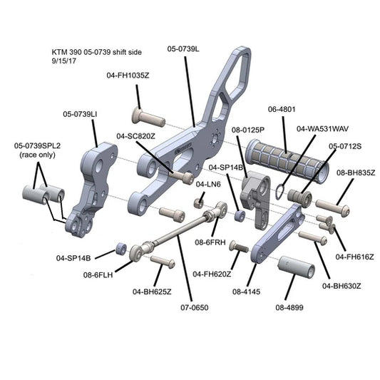 Woodcraft Complete Rearset Kit w/ Pedals - STD/GP Shift KTM RC390 2022-2024
